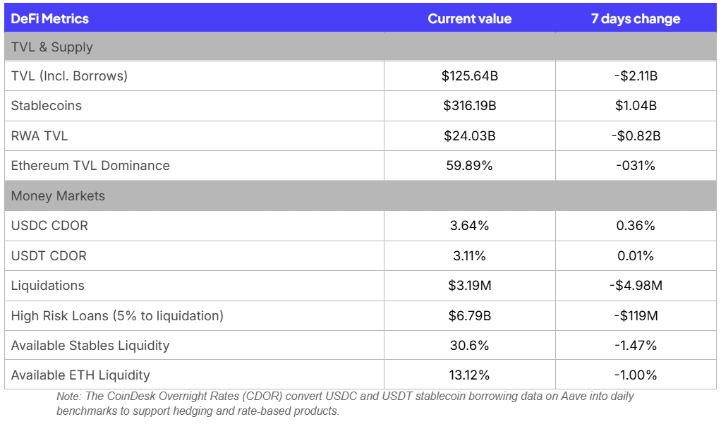 Metrics are relatively flat as macro risks continue to prevail. The $2B drop in TVL can be attributed to contagion effect of the Drift exploit