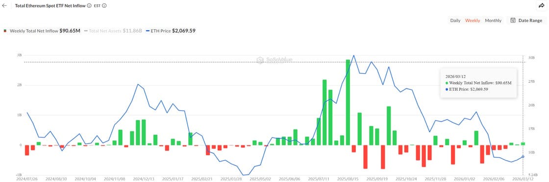 The launch, which occurred on March 12, 2026, saw the fund debut with $107 million in assets and $15.5 million in first-day trading volume. While this volume lagged behind some of the more aggressive Solana-based staking products seen last year, market analysts have characterized the start as very solid for an institutional-grade product targeting a more conservative, long-term investor base. The $15M traded in the first day put them in the second spot for the most traded ETH ETF yesterday, and its over $100M inflows are above the weekly inflows of all other ETH ETFs combined.