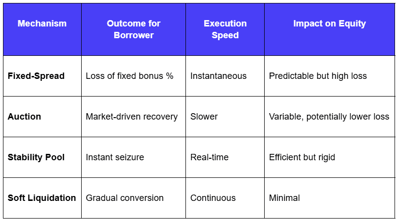 Liquidations incur costs through the Liquidation Incentive Factor (LIF), a bonus paid to third-party liquidators directly from the borrower’s equity. While higher incentives ensure protocol solvency, they increase the borrower’s realized loss. The protocol architecture, using mechanisms like fixed-spread models, competitive auctions, or gradual soft liquidations, determines how much equity is preserved during this process.
